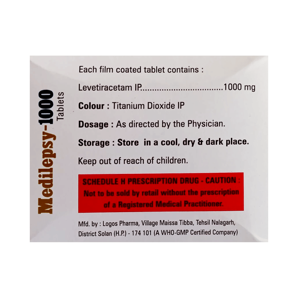 Medilespy 1000 Tablet is an anti-epileptic medicine used to treat seizures (fits) in epilepsy. It can be used alone or along with other medicines. It helps to prevent seizures for as long as you continue to take it. Medilespy 1000 Tablet suppresses the abnormal electrical activity in the brain. You can take it with or without food but try to take it at the same time each day to get the most benefit. The dose will depend on your condition and how you respond to the medicine. Your doctor will advise the right dose for you. It is generally advised as a long-term treatment. You should continue taking it for as long as your doctor has told you to, even if you feel well. If you stop or miss doses your seizures could get worse.Some common side effects of this medicine include headache, irritation, sleepiness, behavior changes, aggressive behavior, and decreased appetite. Side effects are more common during the first few weeks and usually lessen as your body gets used to the medicine. Most of these side effects do not need medical attention, but some of them can be serious. A small number of people being treated with this medicine have had thoughts of harming or killing themselves. Contact your doctor if your mood changes for the worse.Before taking it, you should tell your doctor if you have kidney problems, depression, or suicidal thoughts and if you are pregnant, planning to become pregnant, or breastfeeding. Your doctor may suggest regular blood tests to monitor your kidney function while taking this medicine.