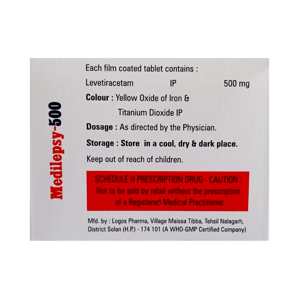Medilespy 500 Tablet is an anti-epileptic medicine used to treat seizures (fits) in epilepsy. It can be used alone or along with other medicines. It helps to prevent seizures for as long as you continue to take it. Medilespy 500 Tablet suppresses the abnormal electrical activity in the brain. You can take it with or without food but try to take it at the same time each day to get the most benefit. The dose will depend on your condition and how you respond to the medicine. Your doctor will advise the right dose for you. It is generally advised as a long-term treatment. You should continue taking it for as long as your doctor has told you to, even if you feel well. If you stop or miss doses your seizures could get worse.Some common side effects of this medicine include headache, irritation, sleepiness, behavior changes, aggressive behavior, and decreased appetite. Side effects are more common during the first few weeks and usually lessen as your body gets used to the medicine. Most of these side effects do not need medical attention, but some of them can be serious. A small number of people being treated with this medicine have had thoughts of harming or killing themselves. Contact your doctor if your mood changes for the worse.Before taking it, you should tell your doctor if you have kidney problems, depression, or suicidal thoughts and if you are pregnant, planning to become pregnant, or breastfeeding. Your doctor may suggest regular blood tests to monitor your kidney function while taking this medicine.