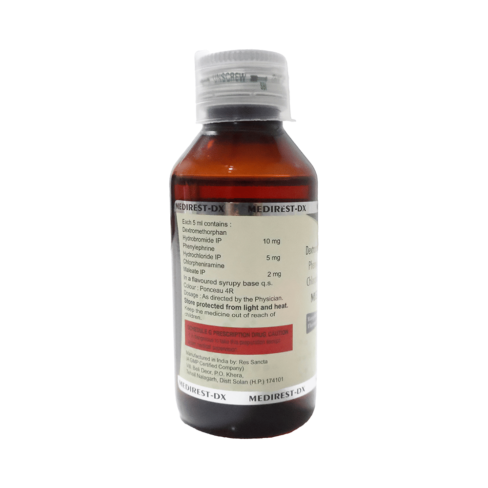 Take this medicine in the dose and duration as advised by your doctor. Check the label for directions before use. Measure it with a measuring cup and take it by mouth. Shake well before use. Medirest-DX Syrup Raspberry may be taken with or without food, but it is better to take it at a fixed time.