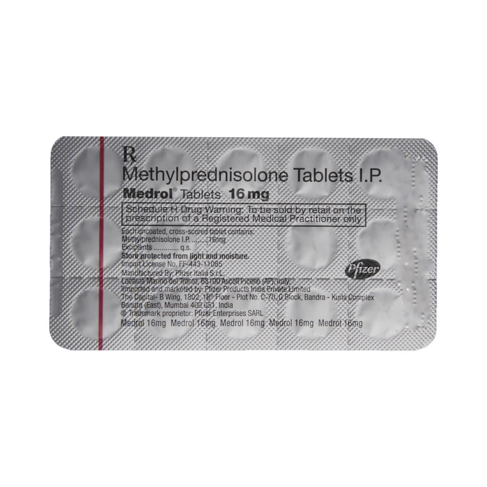 Medrol 16mg Tablet is a medicine used to treat a wide variety of medical conditions such as severe allergic conditions, asthma, rheumatic disorder, skin and eye disorders, and systemic lupus erythematosus. It provides relief by preventing the release of substances that cause inflammation. Medrol 16mg Tablet should be taken with food. This will prevent you from getting an upset stomach. The dose and duration will depend on what you are being treated for. You should always take the amount prescribed. Do not take a larger dose or use it more often. Keep taking it regularly even if you feel well. Some conditions will become worse if you stop using this medicine.The most common side effects of this medicine include skin thinning, increased risk of infection, reduction in bone density, and mood changes. If these side effects bother you or do not go away, your doctor may suggest ways of preventing or reducing them. The use of this medicine may lower your ability to fight infections so avoid being near people who might pass on infections such as measles, chickenpox, or flu.Before using this medicine, you should tell your doctor if you have brittle bones (osteoporosis), mood disorders, high blood pressure, or liver disease. Also, tell your doctor if you have diabetes, this medicine may increase blood glucose levels which can cause or worsen diabetes. Many other drugs may affect, or be affected by, this medicine so let your doctor know all other medicines you are using, to make sure it is safe. You should also tell your doctor if you are pregnant, planning pregnancy or breastfeeding.