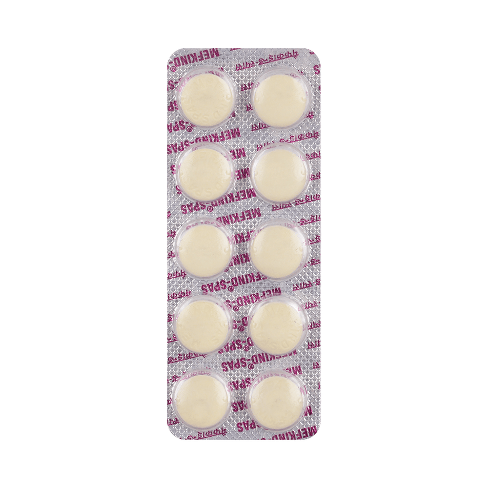 Mefkind-Spas Tablet is a prescription medicine that helps to provide symptomatic relief from menstrual (period-related) pain and cramps. It is also used to treat abdominal pain by relieving spasms of the muscles in the stomach and intestines. Mefkind-Spas Tablet should be taken with food. This will prevent you from getting an upset stomach. The dose and duration will depend on what you are using it for and how well it helps your symptoms. Use it regularly and do not discontinue using it until the doctor tells you.It may cause some common side effects like dizziness, dryness in the mouth, blurred vision, nausea, diarrhea, headache, and sleepiness. If you experience any of such side effects that do not go away or get worse, you should let your doctor know. Your doctor may be able to suggest ways of preventing or reducing the side effects. In general, you should try to use the smallest amount necessary to control your symptoms.Before using the medicine, you should tell your doctor if you have any kidney or liver problems, or if you are taking any other medicines. Pregnant and breastfeeding women should also consult their doctors before using the medicine.