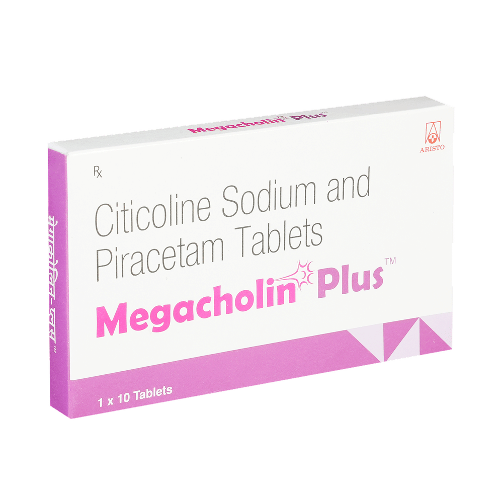 Megacholin Plus Tablet is a medicine used in stroke rehabilitation and as a cognitive enhancer. It protects the nerve cells in the brain from damage and also helps to repair the damaged nerve cells. It may also be used in the treatment of brain trauma. Megacholin Plus Tablet may be taken with or without food, preferably at the same time each day. Take it at the same time each day as this helps to maintain a consistent level of medicine in the body. Take this medicine in the dose and duration as advised by your doctor and if you have missed a dose, take it as soon as you remember it. Do not skip any doses and finish the full course of treatment even if you feel better. It is important that this medication is not stopped suddenly without talking to your doctor as it may worsen your symptoms.Some common side effects of this medicine include hyperactivity, stomach pain, nervousness, and decreased blood pressure. However, these are temporary and usually resolve on their own. Please consult your doctor if these do not subside or bother you. Drink plenty of fluids to keep yourself hydrated while taking this medicine as this medicine may cause diarrhea. This medicine may cause weight gain and to control it, you should have a balanced diet and exercise regularly.