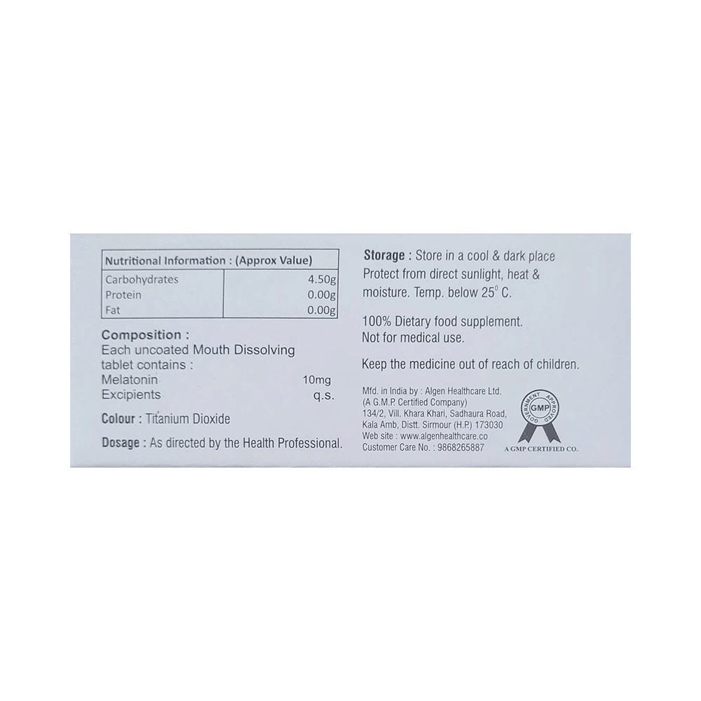 Melogram 10 Tablet MD is a medicine used in the treatment of insomnia and jet lag (a sleep disorder due to frequent travel to different time zones). It reduces jet lag symptoms such as irritability, indigestion, daytime tiredness, and sleep disturbances. Melogram 10 Tablet MD helps to synchronize the body’s biological day-night rhythm. It should be taken either 2 hours before or 2 hours after food, preferably at bedtime. However, it is advised to take it at a fixed time each day to maintain a consistent level of medicine in the blood. You should never skip any doses and finish the full course of treatment even if you feel better. This medicine should not be stopped suddenly without talking to your doctor.Some common side effects of this medicine include headache and drowsiness. It even causes dizziness and sleepiness, so do not drive or do anything that requires mental focus until you know how this medicine affects you. It is important to note that this medicine should not be used for daily naps.Consult your doctor before taking this medicine if you are suffering from any liver or kidney problems. You should avoid smoking and alcohol while using this medicine. Pregnant and breastfeeding mothers should not use this medicine. However, if the need arises, please consult your doctor before using it.