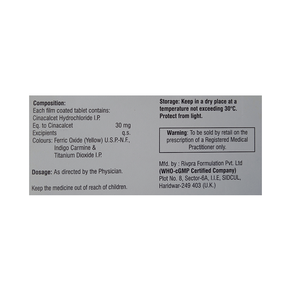 Merycet 30 Tablet works by lowering a chemical (parathyroid hormone), which makes calcium level go back to normal.