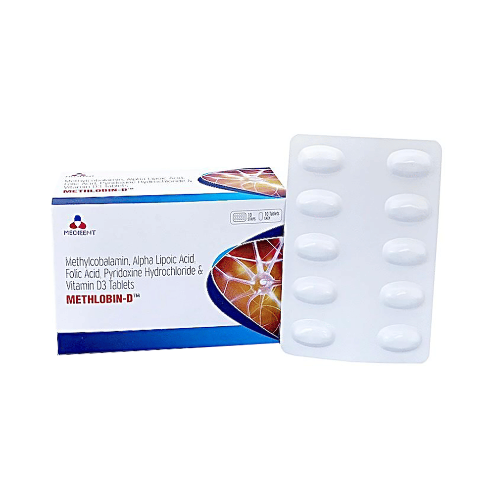 Methlobin-D Tablet (10 Each) is a prescription medicine which has a combination of medicine that is used in the treatment of nutritional deficiencies. It contains nutritional supplements that are important for the proper growth and development of the body. Methlobin-D Tablet (10 Each) may be taken with or without food. It should be used in the dose and duration as prescribed by your doctor. It is advised to take this medicine at a fixed time.This medicine should not be taken more than the recommended dose. It is usually a safe medicine, however some people may experience diarrhea, nausea, vomiting, and constipation. If you experience any of these side effects which do not resolve on their own or get worse, let your doctor know.Before taking this medicine, tell your doctor if you have any other health conditions. Inform your doctor if you are taking any other medicines or if you are pregnant or breastfeeding. It is advised to avoid alcohol intake while taking this medicine.