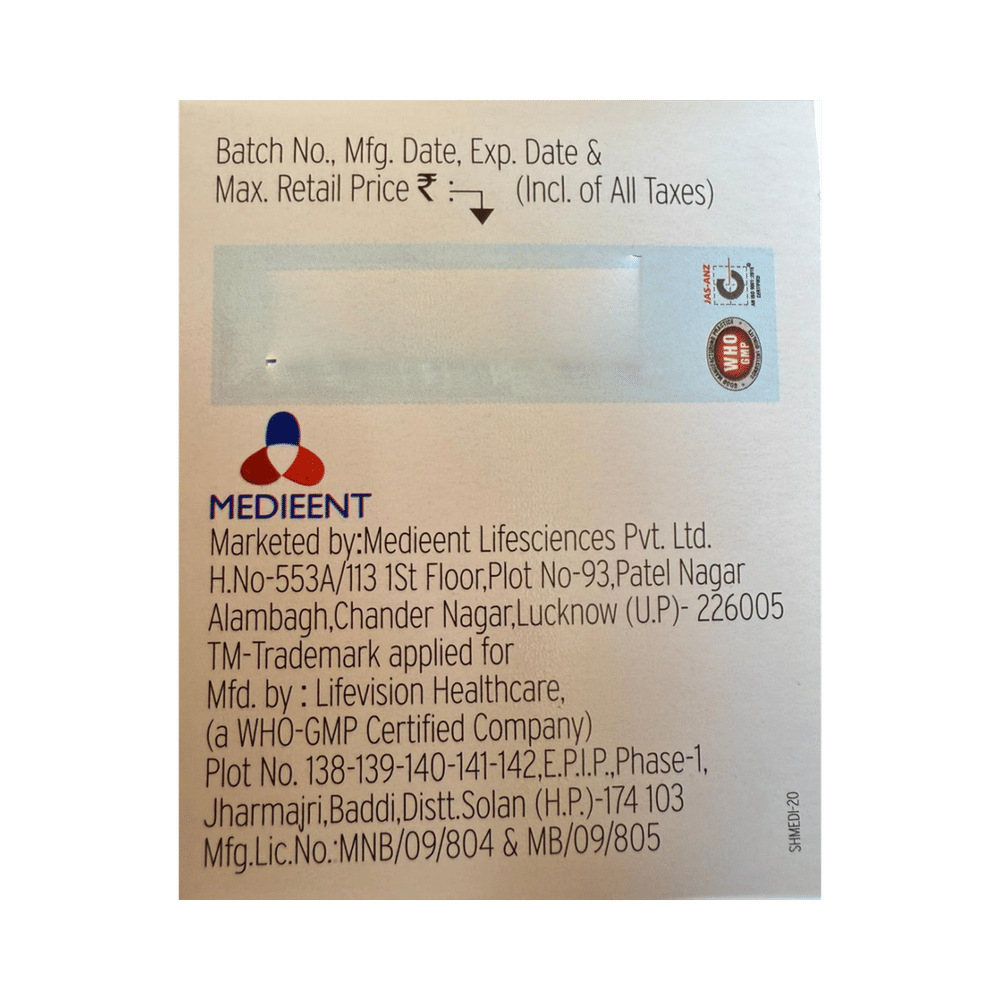Manufacturer: Medieent Lifesciences Pvt. Ltd. Salt Composition: Methylcobalamin (1500mcg) + Alpha Lipoic Acid (100mg) + Vitamin B6 (Pyridoxine) (3mg) + Folic Acid (1.5mg) + Vitamin D3 (1000IU)