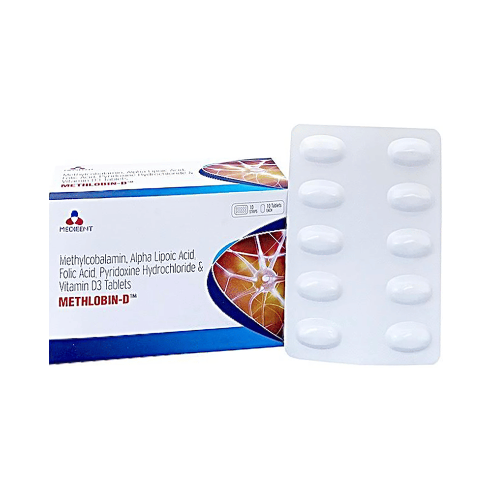 Methlobin-D Tablet (10 Each) is a prescription medicine which has a combination of medicine that is used in the treatment of nutritional deficiencies. It contains nutritional supplements that are important for the proper growth and development of the body. Methlobin-D Tablet (10 Each) may be taken with or without food. It should be used in the dose and duration as prescribed by your doctor. It is advised to take this medicine at a fixed time.This medicine should not be taken more than the recommended dose. It is usually a safe medicine, however some people may experience diarrhea, nausea, vomiting, and constipation. If you experience any of these side effects which do not resolve on their own or get worse, let your doctor know.Before taking this medicine, tell your doctor if you have any other health conditions. Inform your doctor if you are taking any other medicines or if you are pregnant or breastfeeding. It is advised to avoid alcohol intake while taking this medicine.