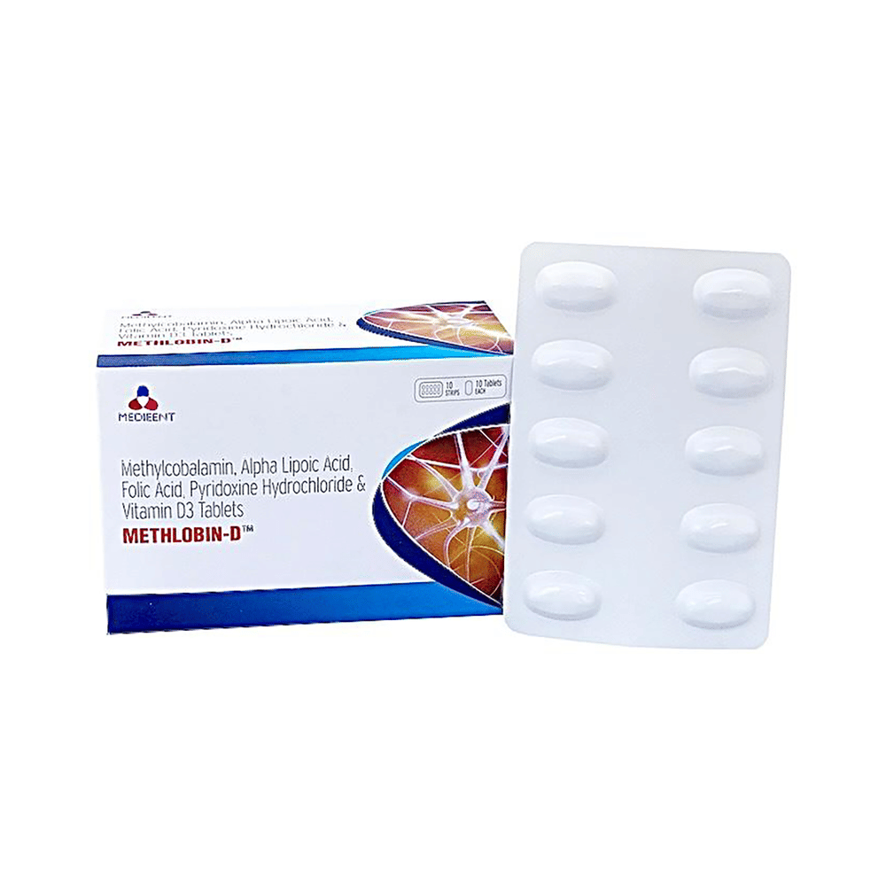 Methlobin-D Tablet (10 Each) is a prescription medicine which has a combination of medicine that is used in the treatment of nutritional deficiencies. It contains nutritional supplements that are important for the proper growth and development of the body. Methlobin-D Tablet (10 Each) may be taken with or without food. It should be used in the dose and duration as prescribed by your doctor. It is advised to take this medicine at a fixed time.This medicine should not be taken more than the recommended dose. It is usually a safe medicine, however some people may experience diarrhea, nausea, vomiting, and constipation. If you experience any of these side effects which do not resolve on their own or get worse, let your doctor know.Before taking this medicine, tell your doctor if you have any other health conditions. Inform your doctor if you are taking any other medicines or if you are pregnant or breastfeeding. It is advised to avoid alcohol intake while taking this medicine.