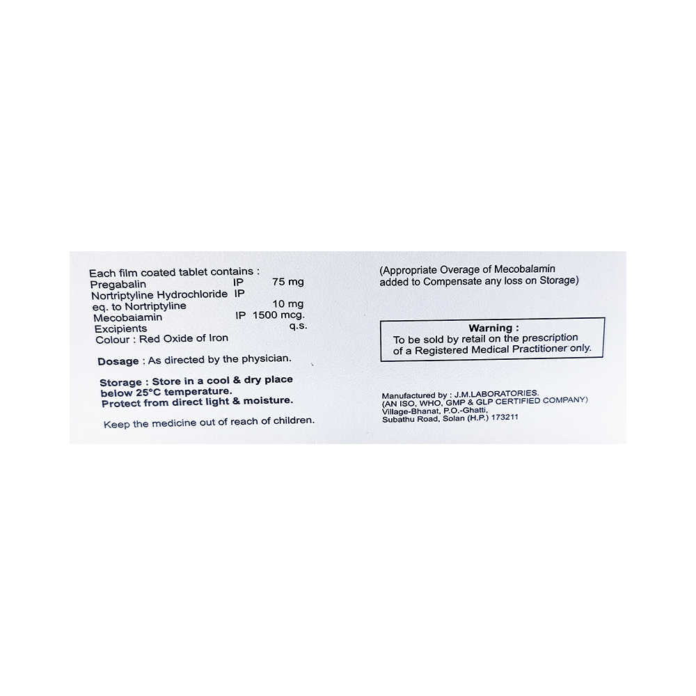 Salt Composition: Pregabalin (75mg) + Nortriptyline (10mg) + Methylcobalamin (1500mcg)