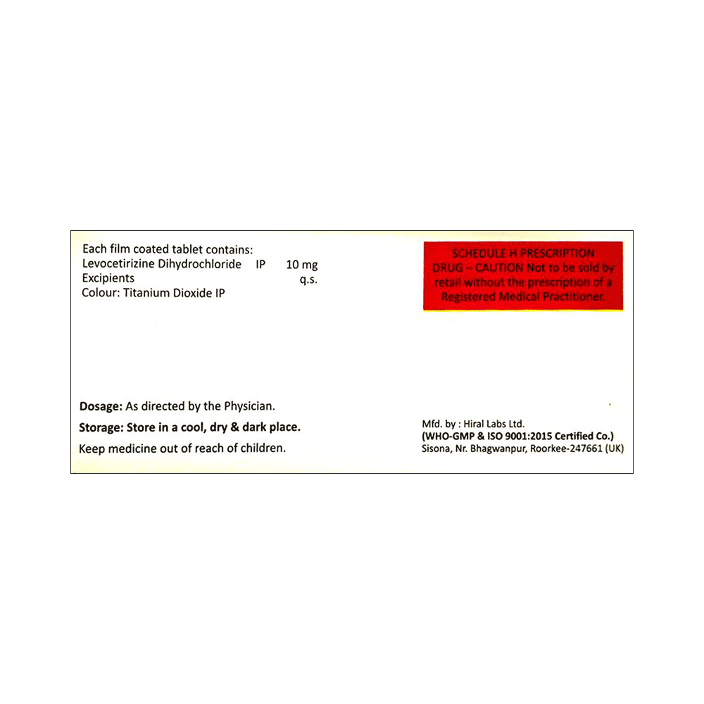 Salt Composition: Levocetirizine (10mg)