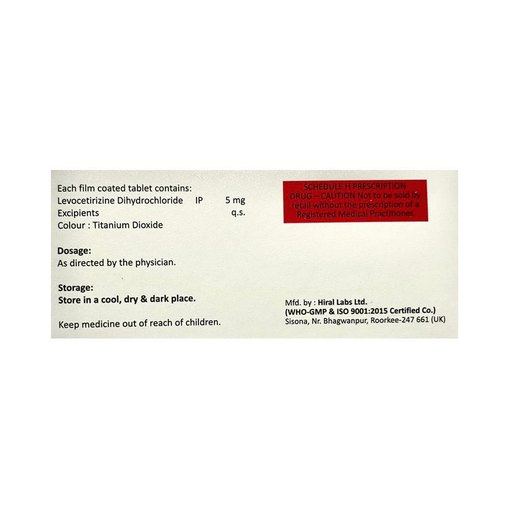 Salt Composition: Levocetirizine (5mg)