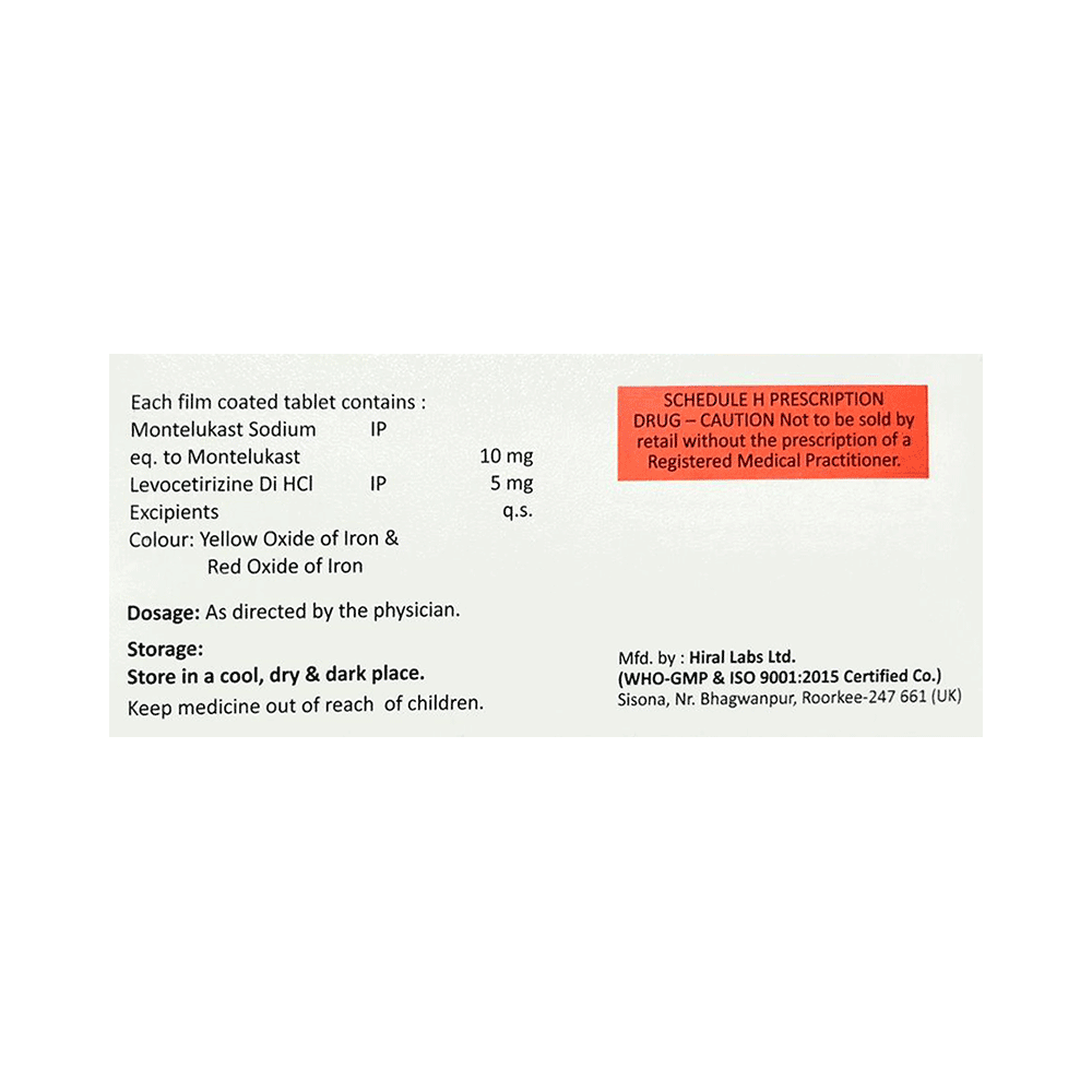 Salt Composition: Levocetirizine (5mg) + Montelukast (10mg)