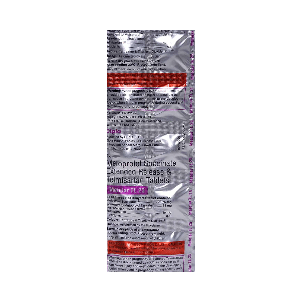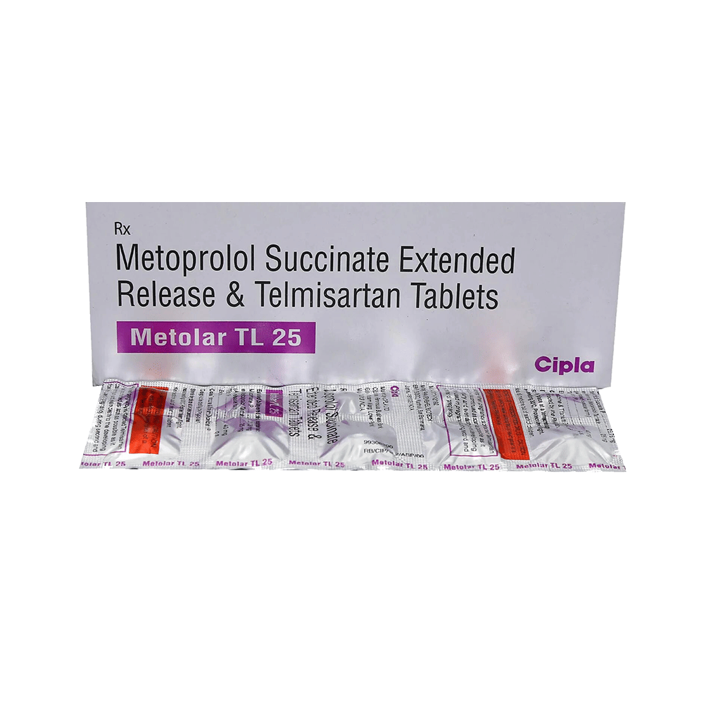 MetoLAR TL 25 Tablet is a combination of two blood-pressure lowering medicines: Telmisartan and Metoprolol Succinate.