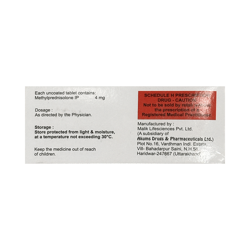 Salt Composition: Methylprednisolone (4mg)