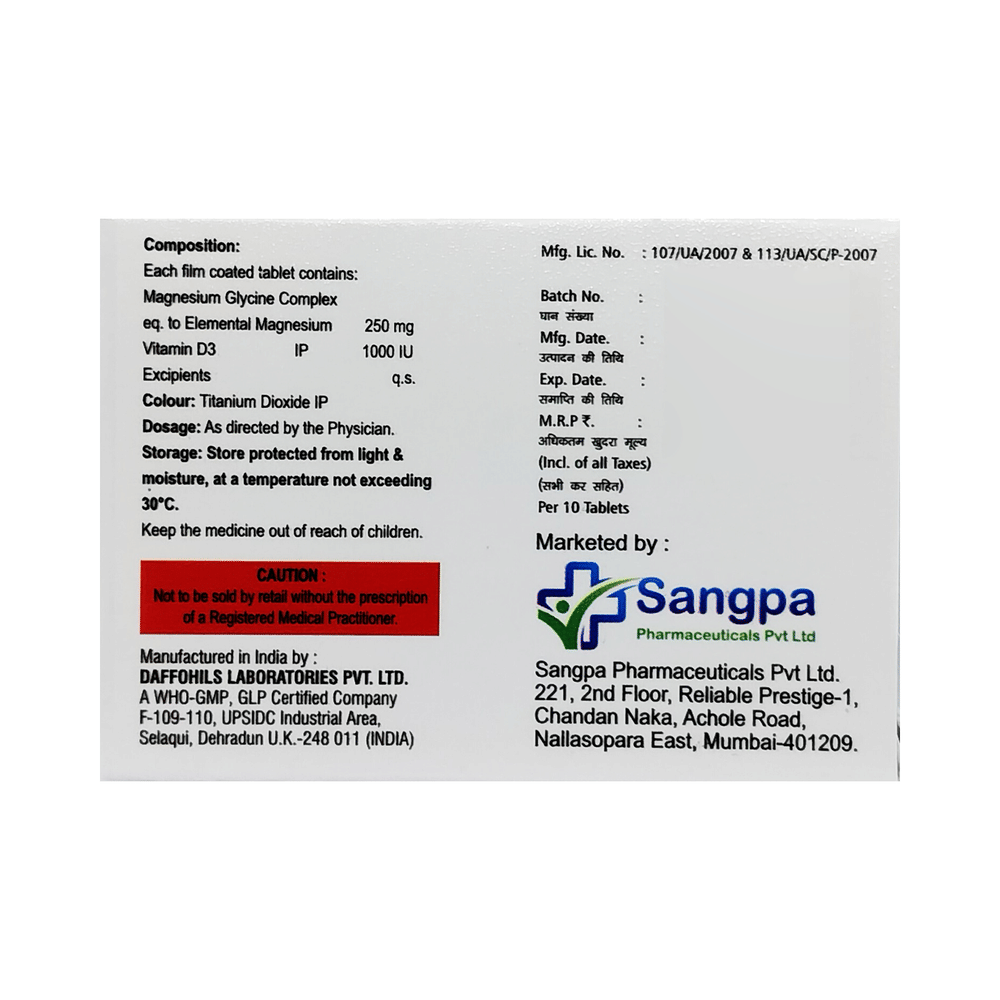 Salt Composition: Magnesium (250mg) + Vitamin D3 (1000IU)