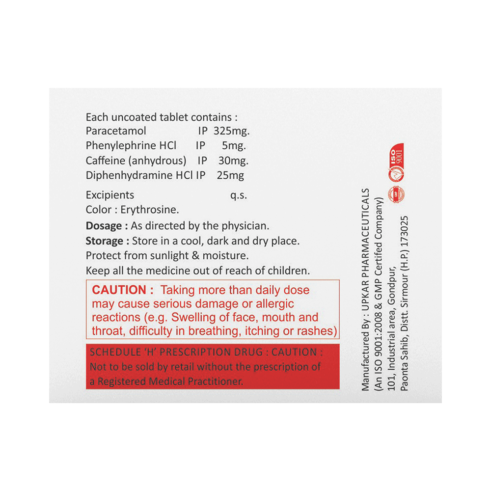 Salt Composition: Caffeine (30mg) + Diphenhydramine (25mg) + Paracetamol (325mg) + Phenylephrine (5mg)