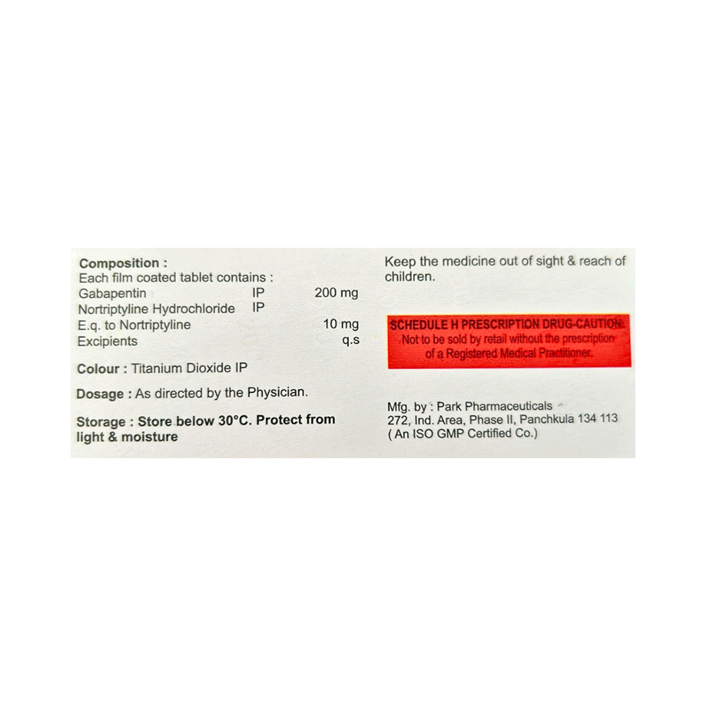 Salt Composition: Gabapentin (200mg) + Nortriptyline (10mg)