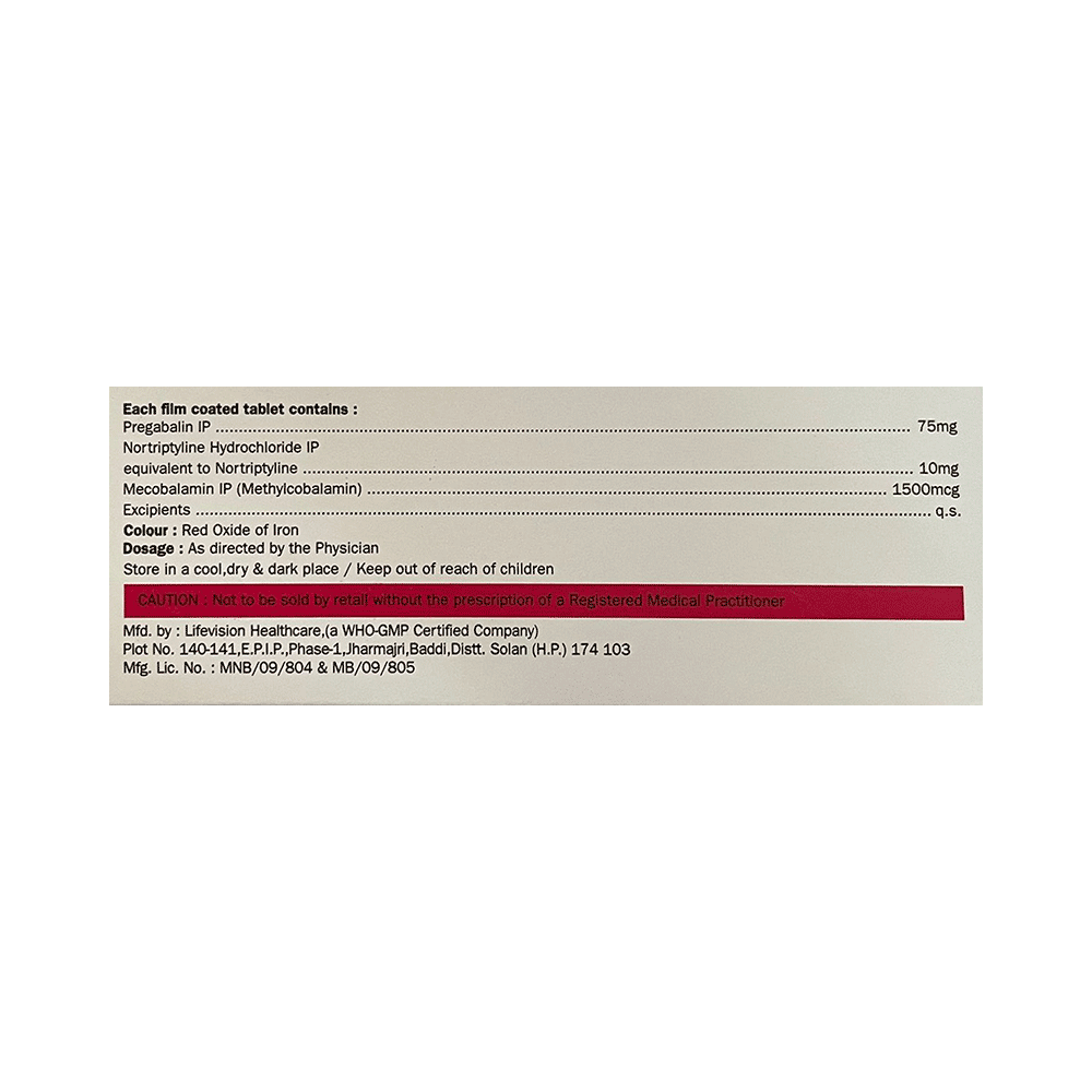 Salt Composition: Pregabalin (75mg) + Nortriptyline (10mg) + Methylcobalamin (1500mcg)