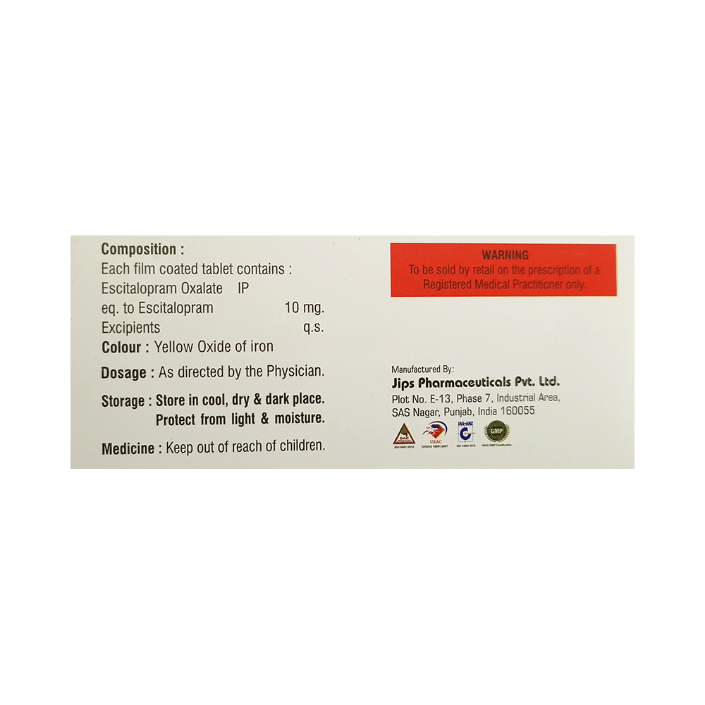Salt Composition: Escitalopram Oxalate (10mg)
