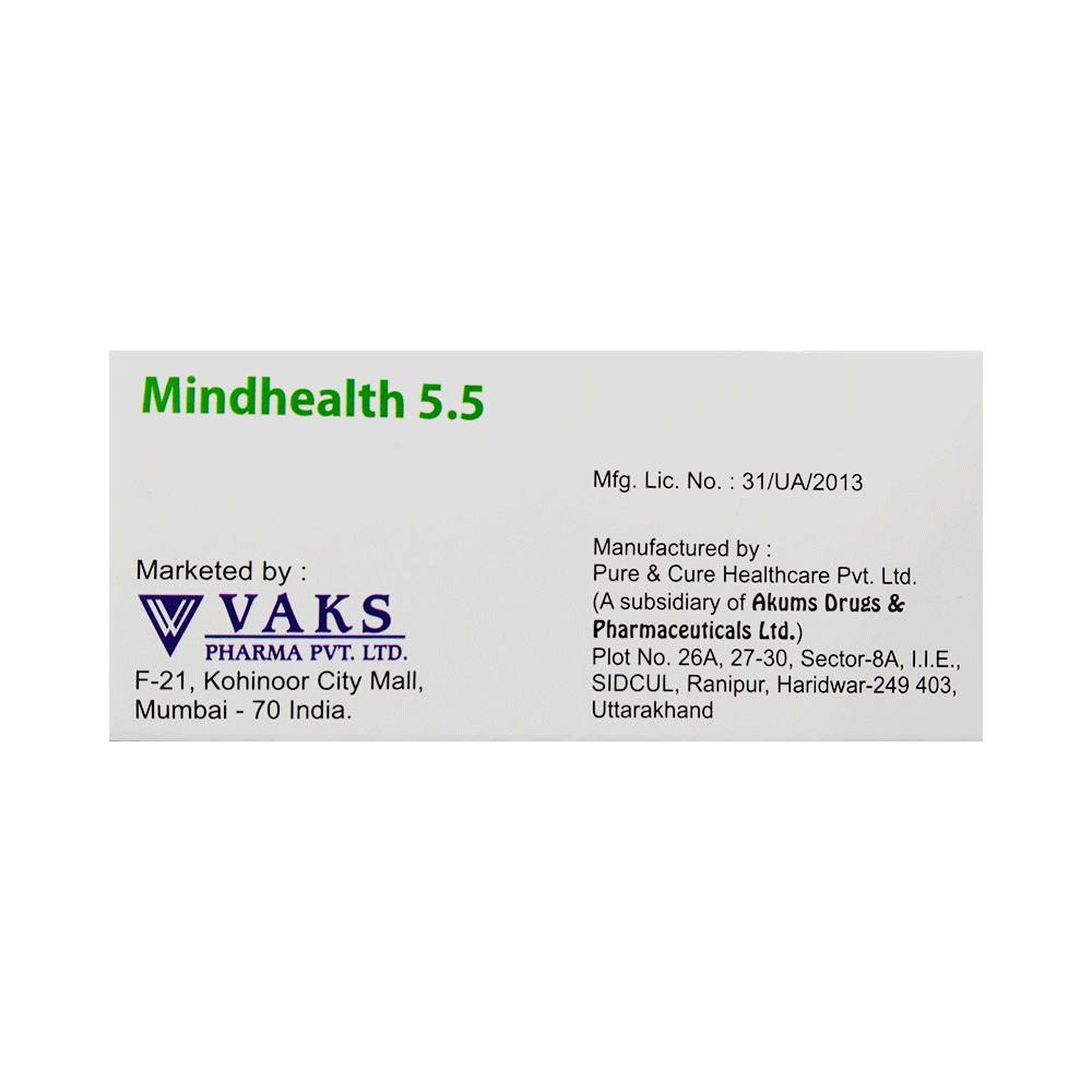 Take this medicine in the dose and duration as advised by your doctor. Swallow it as a whole. Do not chew, crush or break it. Mindhealth 5.5 Tablet may be taken with or without food, but it is better to take it at a fixed time.