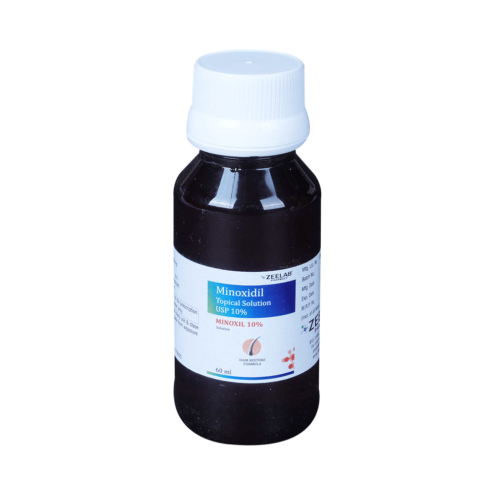 In Treatment of Hair lossMinoxil 10% Solution is a medicine used to treat common hereditary hair loss. It can prevent further hair loss and help hair to regrow. It works by increasing blood flow to the hair follicles on your scalp, which prevents hair cell death and also enhances new hair growth. It is most effective for baldness or thinning at the top of the scalp, but less effective at the front or for receding hairline.Benefits are less likely if you have been bald for many years or have a large area of hair loss. Minoxil 10% Solution is not suitable for sudden or unexplained hair loss. It is considered a safe medicine. There are separate products for men and women, and you should follow your doctor’s instructions carefully while using Minoxil 10% Solution. Regrowth of hair improves your appearance, boosts your confidence, and enhances your social life. Use it regularly to maintain hair growth and to get the maximum benefits. Consult your doctor if you notice any changes in the hair growth while using Minoxil 10% Solution.