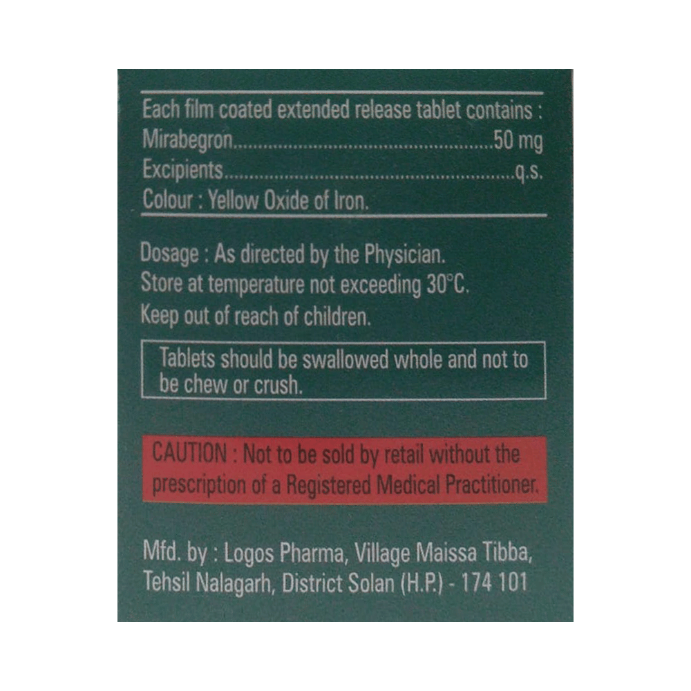Miranext 50 Tablet ER helps you to have better control over your urination. It relaxes your bladder which increases its capacity to hold urine thereby reducing the need to pass urine.