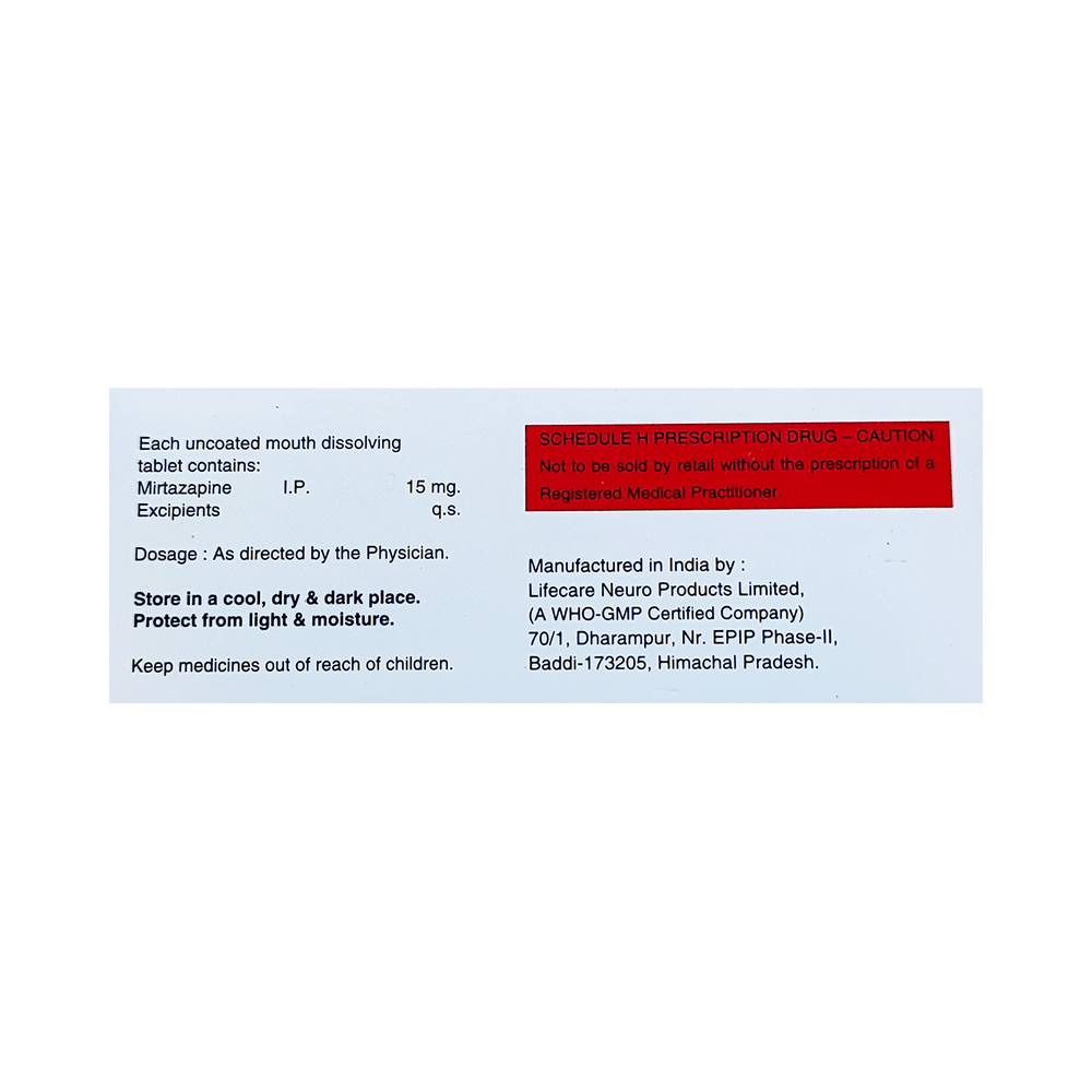Take this medicine in the dose and duration as advised by your doctor. Do not handle the tablets with wet hands. Put it in your mouth but do not swallow it. Mirtabright 15 Tablet MD may be taken with or without food, but it is better to take it at a fixed time.