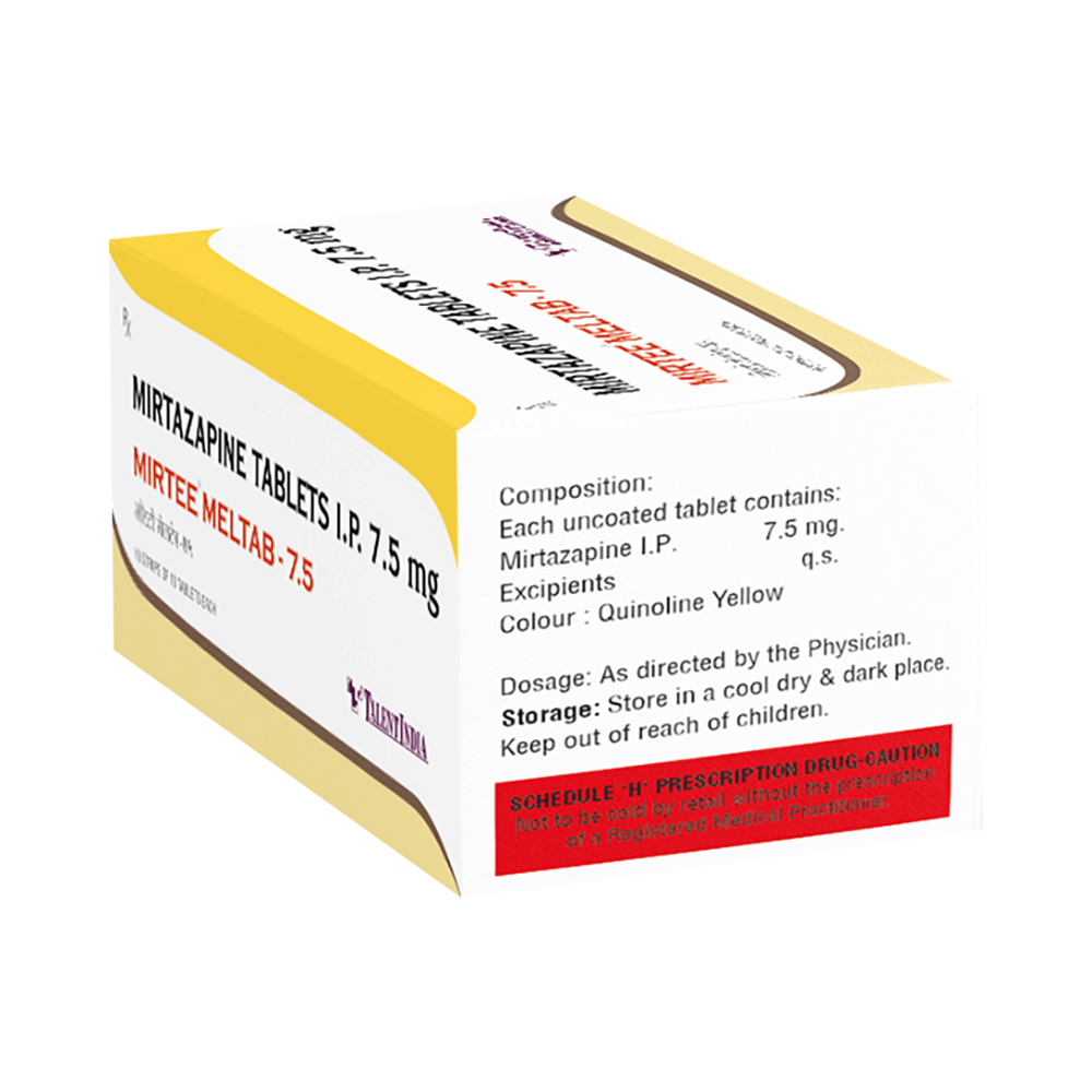 Take this medicine in the dose and duration as advised by your doctor. Swallow it as a whole. Do not chew, crush or break it. Mirtee Meltab 7.5 Tablet may be taken with or without food, but it is better to take it at a fixed time.