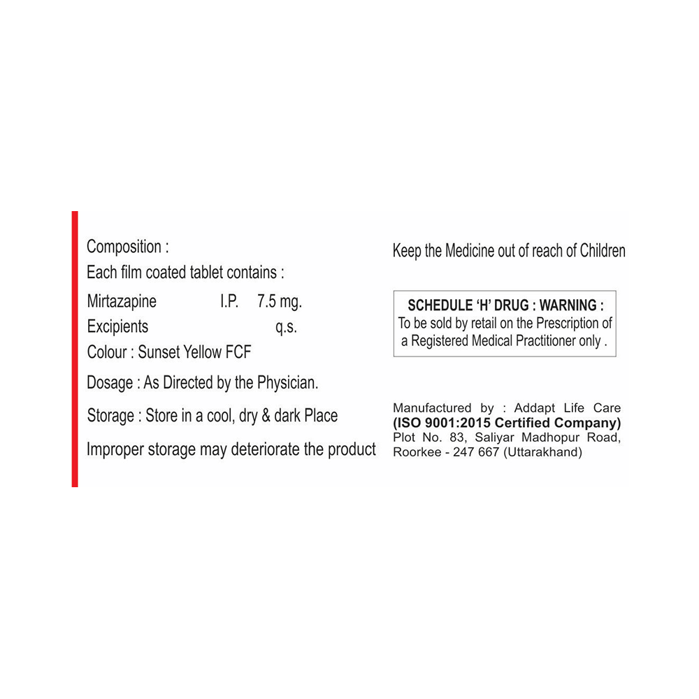 Salt Composition: Mirtazapine (7.5mg)