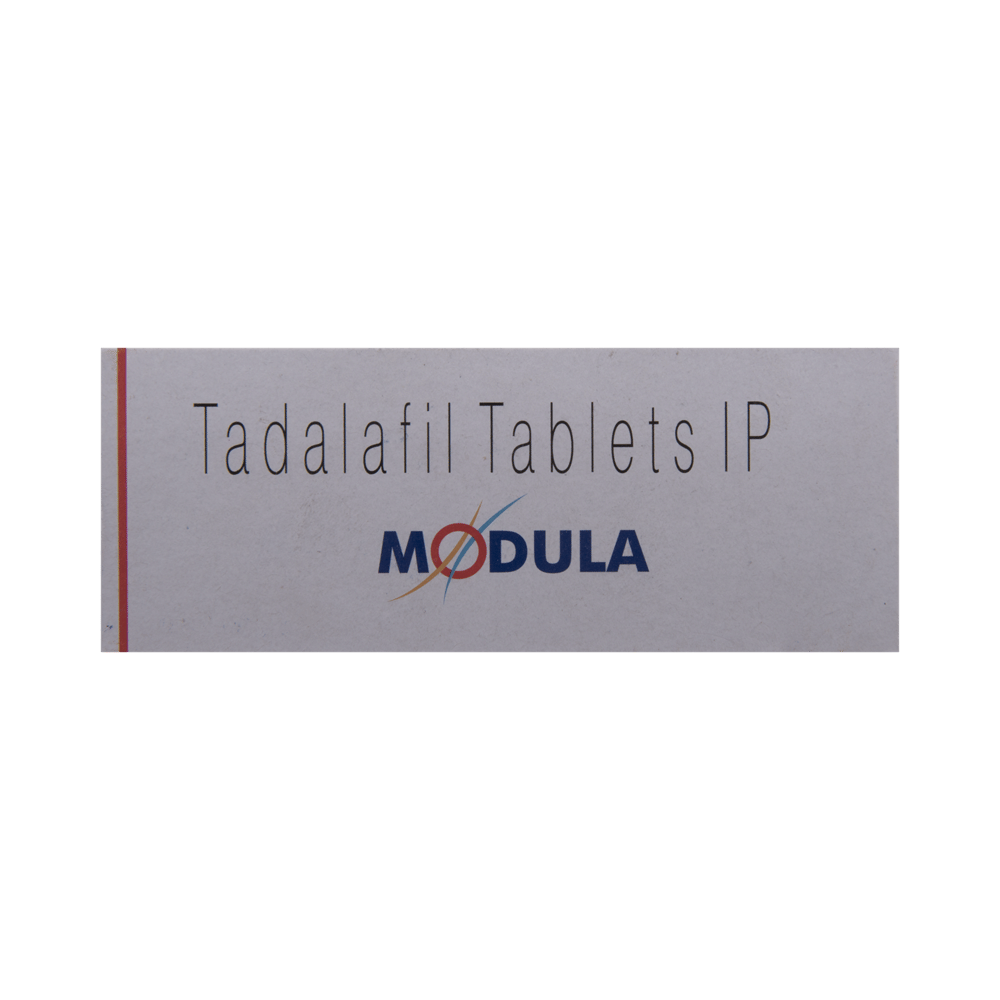 Modula Tablet is a medicine used to treat erectile dysfunction (ED) and benign prostate hyperplasia (BPH) in men. It helps in improving blood flow to the penile region, thereby facilitating and sustaining an erection. It is effective in treating symptoms of benign prostatic hyperplasia (BPH). Modula Tablet can be taken with or without food. Take it in the dose and duration as advised by your doctor. Do not take more than the recommended dosage. The medicine will only help you get an erection if you are sexually stimulated. Do not exceed the prescribed dose, and avoid using it without proper medical guidance.Common side effects of this medicine include headache, dizziness, flushing, indigestion, nasal congestion, and muscle and back pain. If any of these side effects do not go away on their own or bother you, consult your doctor. They can suggest ways to reduce or treat them.Do not use Modula Tablet if you are allergic to any of the components of this medicine. Consult a doctor before using if you have a history of heart problems, high or low blood pressure, liver or kidney issues, or if you are taking any other medications. Avoid consuming alcohol as it may increase certain side effects. Do not take Modula Tablet with other erectile dysfunction medications without consulting your doctor. This medicine is not intended for use by women or individuals under the age of 18 years.