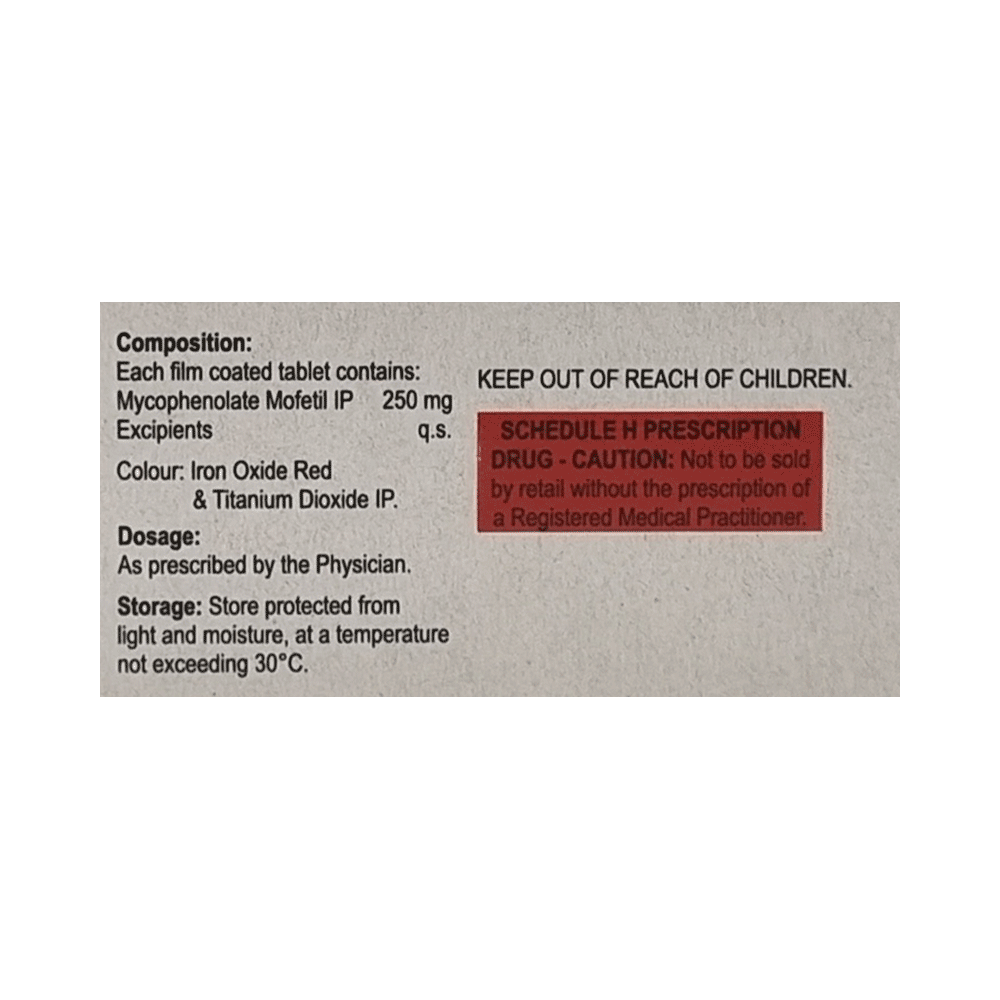 Mofetyl 250 Tablet belongs to a group of medicines called immunosuppressants. It is used with other medicines to prevent your body from rejecting an organ (such as a kidney, heart, or liver) after a transplant. It works by suppressing your body’s immune system so that it does not attack the new organ. The amount of Mofetyl 250 Tablet you take and how often you take it depends on the type of transplant you have. Follow your doctor’s instructions on this. Take it on an empty stomach, at least 1 hour before or 2 hours after a meal, unless your doctor suggest otherwise. Swallow it as a whole, do not crush, chew, or break it. Take the medicine regularly to get maximum benefit and keep taking it even when you feel well. The treatment will continue for as long as you need it to prevent rejection. The most common side effects of this medicine include nausea, vomiting, diarrhea, stomach pain, headache, high blood pressure, infections (viral, fungal, bacterial), and changes in the number of white blood cells amongst others. You may catch more infections than usual as medicine suppresses the immune system. There is also an increased risk of developing some cancers for this reason. To reduce your risk of skin cancer, limit your exposure to the sun and use sunscreen. There is a long list of potential side effects of this medicine. You should ask your doctor about them and what signs to look out for because some of them can be serious and need urgent medical attention.Mofetyl 250 Tablet can cause birth defects and abortion so do not take it if you are pregnant, planning to become pregnant, or breastfeeding. You should talk to your doctor before taking this medicine if you have any signs of infection or if you have any unexpected bruising or bleeding. You should also let your healthcare team know all other medicines you are taking as they may affect, or be affected by, this medicine. You will have regular tests to check for any changes in the number of your blood cells and the amount of sugar and cholesterol in your blood.