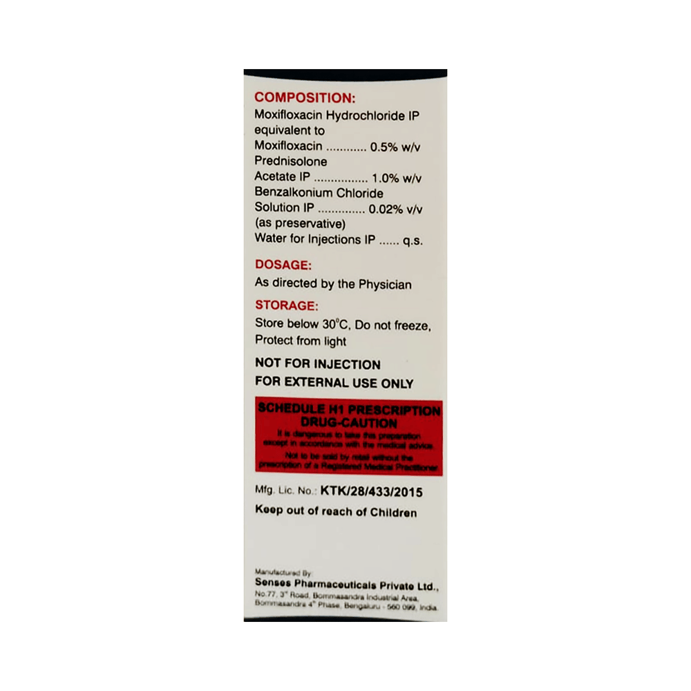 Salt Composition: Moxifloxacin (0.5% w/v) + Prednisolone (1% w/v)