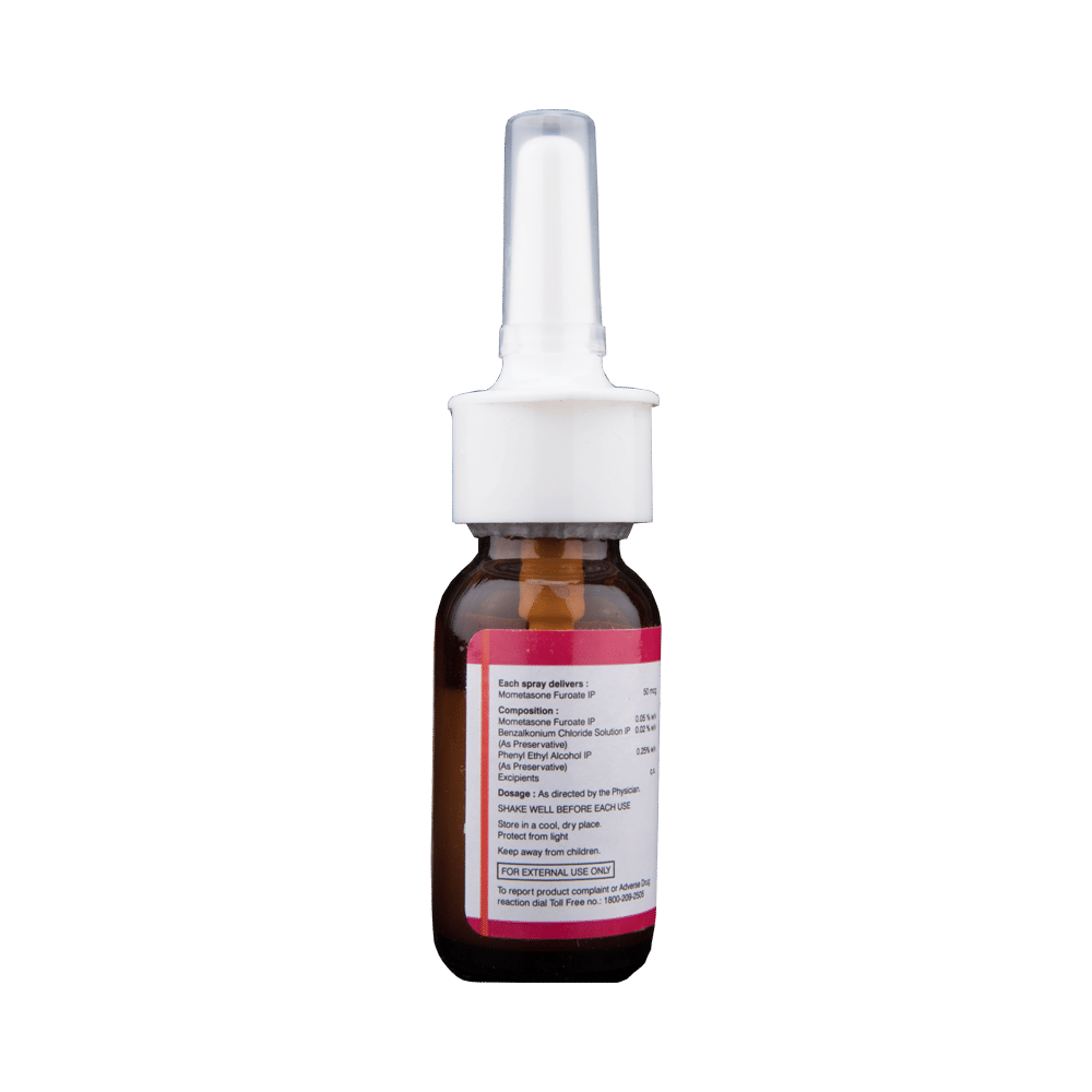 MOMEflo Nasal Spray is a medicine used to prevent and treat allergic symptoms like sneezing and runny nose due to allergies, nasal congestion, and nasal polyps. It works by reducing swelling and irritation in your nose and belongs to a group of medicines called corticosteroids. You should always use MOMEflo Nasal Spray as advised by your doctor. To get the full benefit of the medicine you should take it regularly. Blow your nose gently before using it, keep one nostril closed while applying the medicine into the other, and then sniff hard to make sure it reaches deep into the nose. Repeat for the other nostril.The most common side effects of this medicine include nasal irritation, sore throat, wheezing, nosebleed, upper respiratory tract infection, viral infections, and vomiting. If you are worried about any of the side effects, let your doctor know. Your doctor might be able to help you cope with the side effects. In general, you should try to avoid situations which make your symptoms worse (things like pollen and dust mites) and it’s best not to smoke.Before using this medicine, you should ask your doctor for advice if you are pregnant or breastfeeding. It is important to discuss the risks and benefits with your doctor. Let your doctor also know if you have any other medical conditions taking any other medicines.