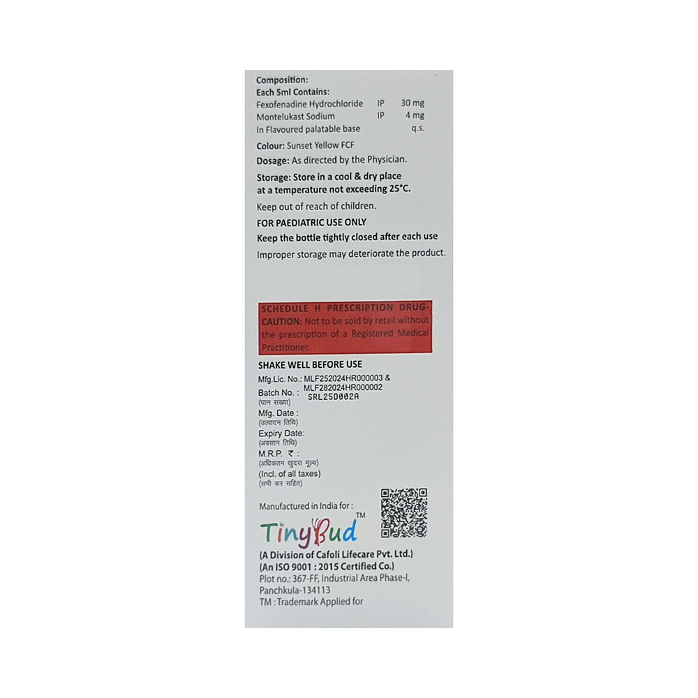Salt Composition: Montelukast (4mg/5ml) + Fexofenadine (30mg/5ml)
