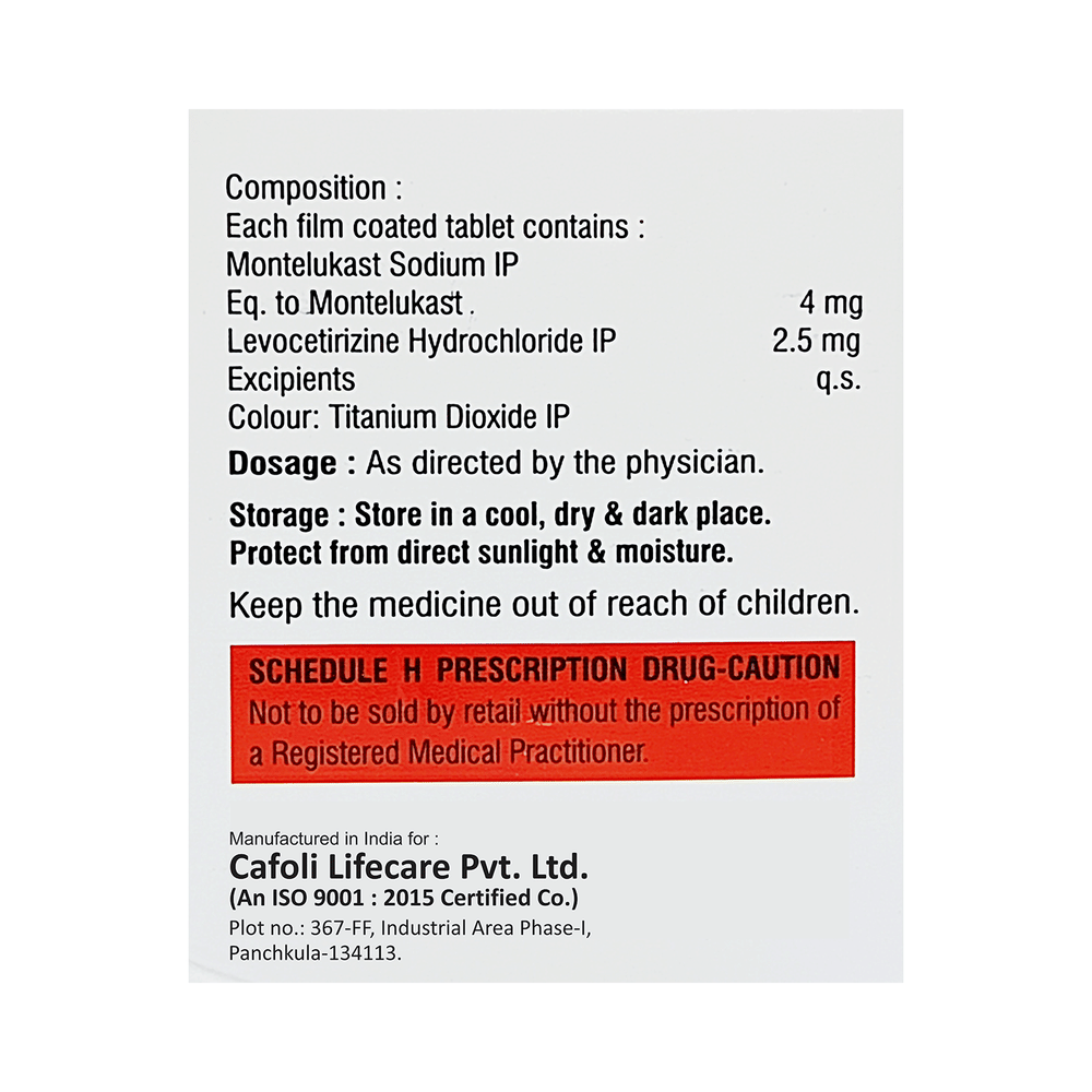 Salt Composition: Levocetirizine (2.5mg) + Montelukast (4mg)