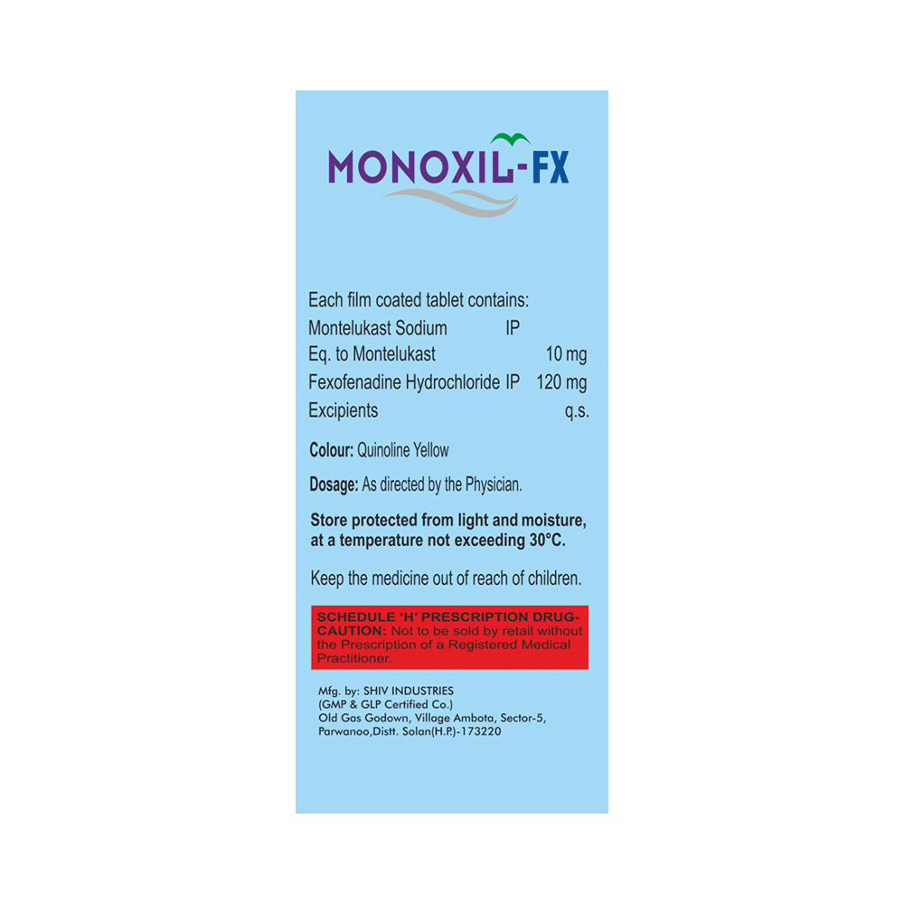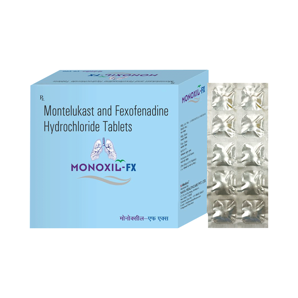 In Treatment of Sneezing and runny nose due to allergiesMonoxil-FX Tablet is a combination medicine that provides relief from symptoms such as blocked or runny nose, sneezing and itchy or watery eyes. This will make it easier for you to go about your daily activities. It rarely has any serious side effects and you may only need to take it on days you have symptoms. If you are taking it to prevent getting symptoms you should use it regularly to get the most benefit.