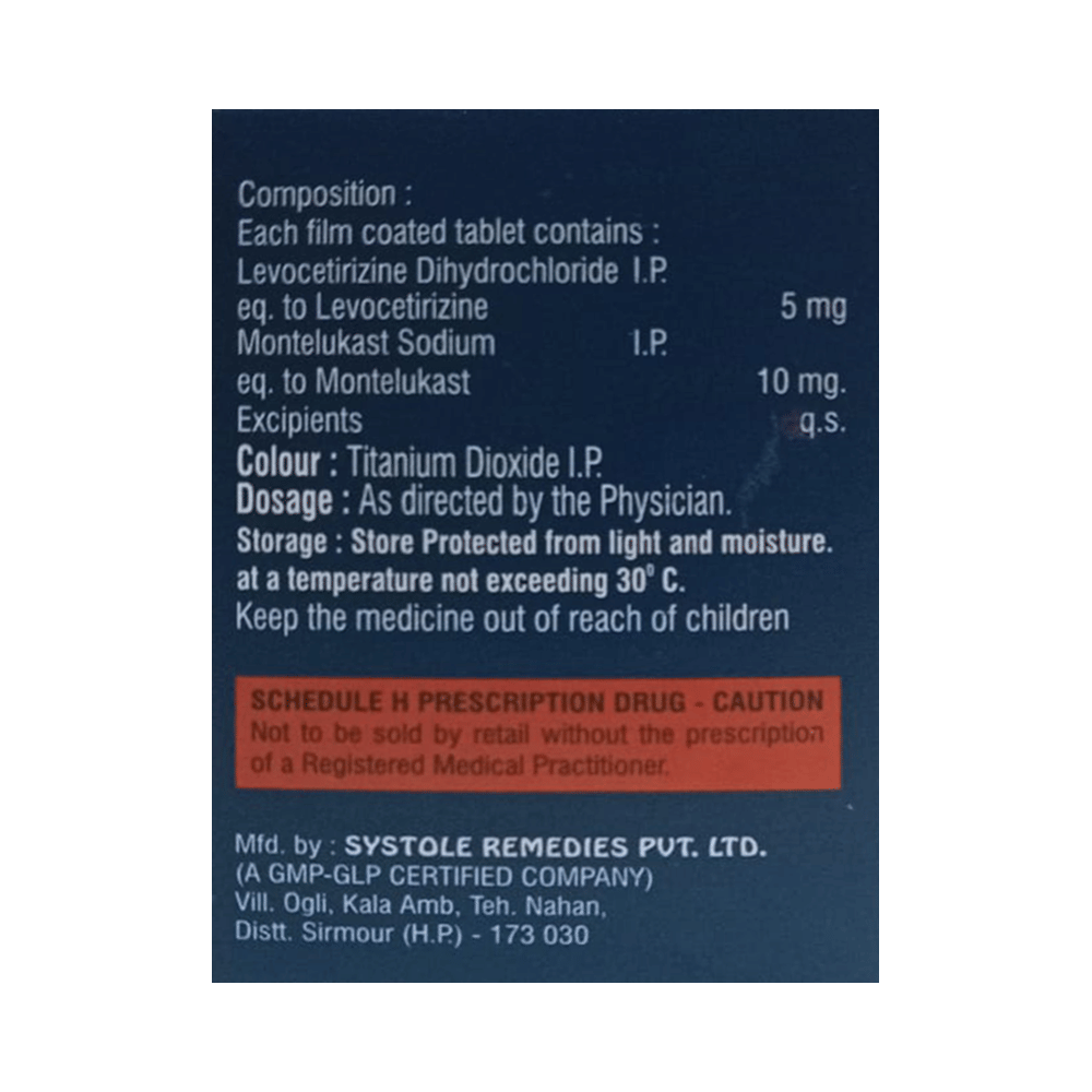 Salt Composition: Levocetirizine (5mg) + Montelukast (10mg)