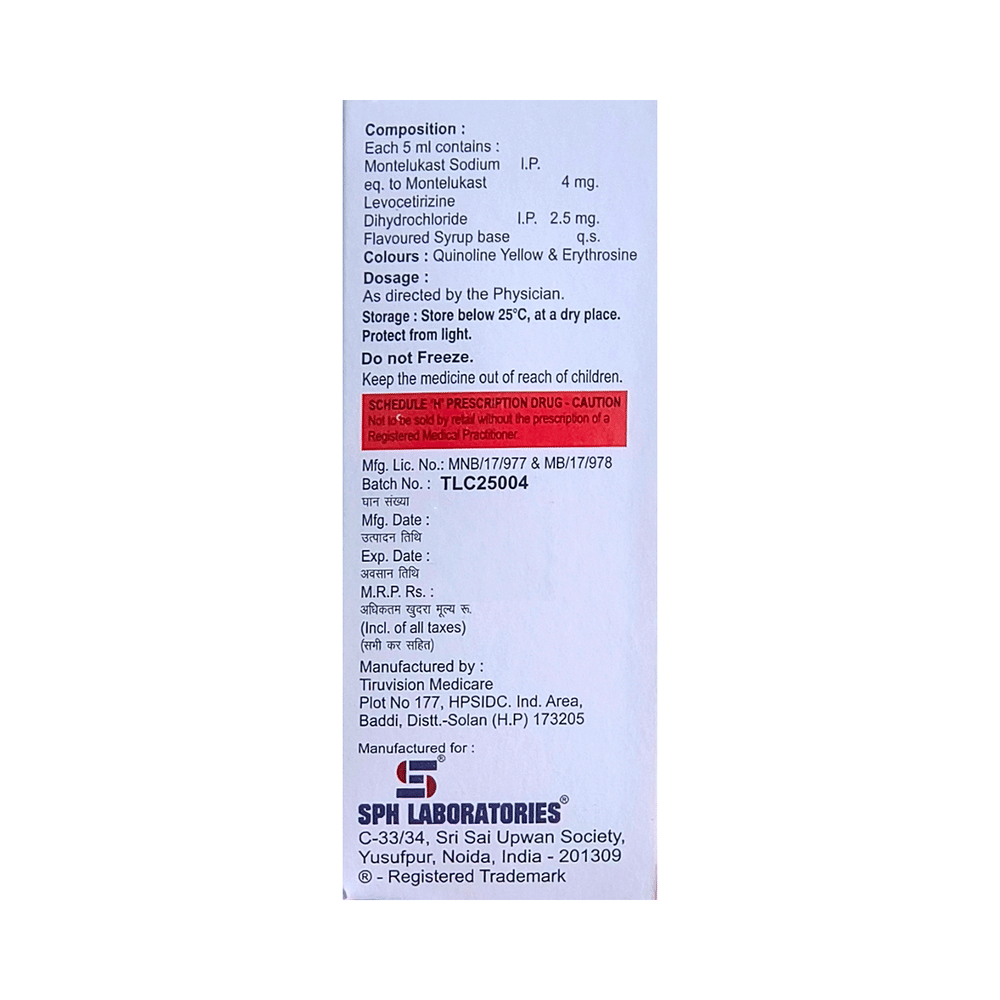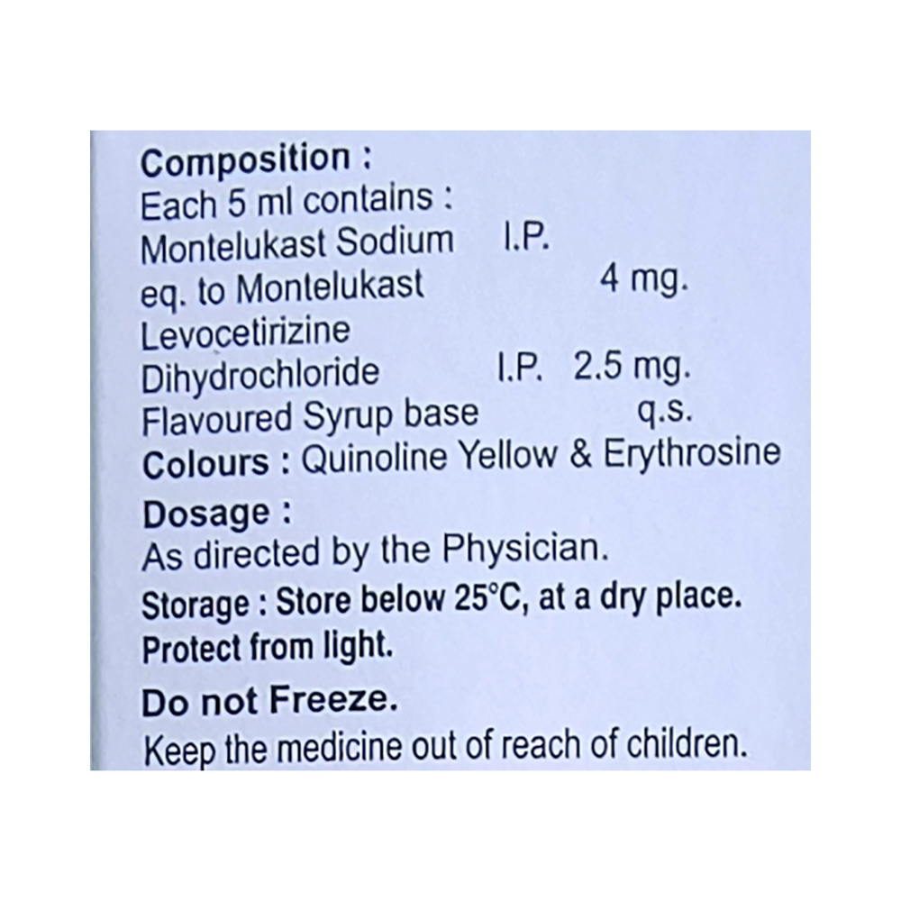 Salt Composition: Levocetirizine (2.5mg/5ml) + Montelukast (4mg/5ml)