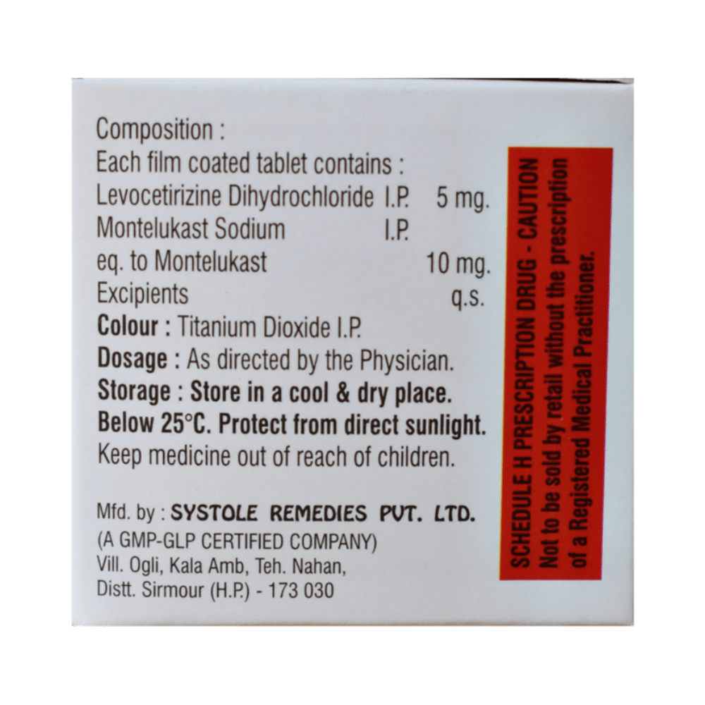 Salt Composition: Levocetirizine (5mg) + Montelukast (10mg)