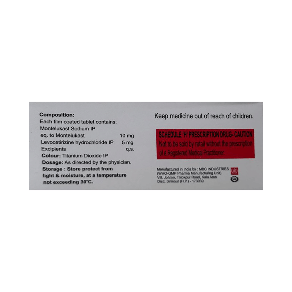 Salt Composition: Levocetirizine (5mg) + Montelukast (10mg)