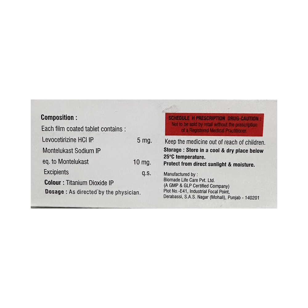 Salt Composition: Levocetirizine (5mg) + Montelukast (10mg)