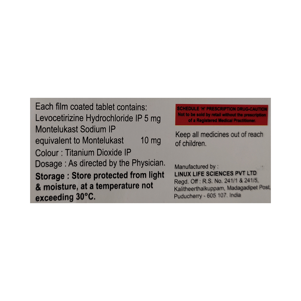Salt Composition: Levocetirizine (5mg) + Montelukast (10mg)