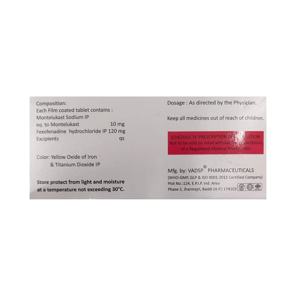 Salt Composition: Montelukast (10mg) + Fexofenadine (120mg)