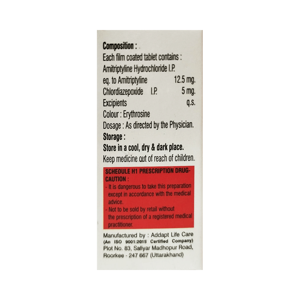 Salt Composition: Amitriptyline (12.5mg) + Chlordiazepoxide (5mg)
