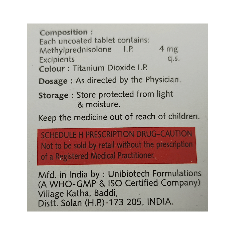 Salt Composition: Methylprednisolone (4mg)