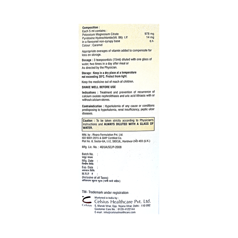 Mpot B6 Oral Solution Natural Mango Sugar Free is prescribed for the treatment and prevention of kidney stones.