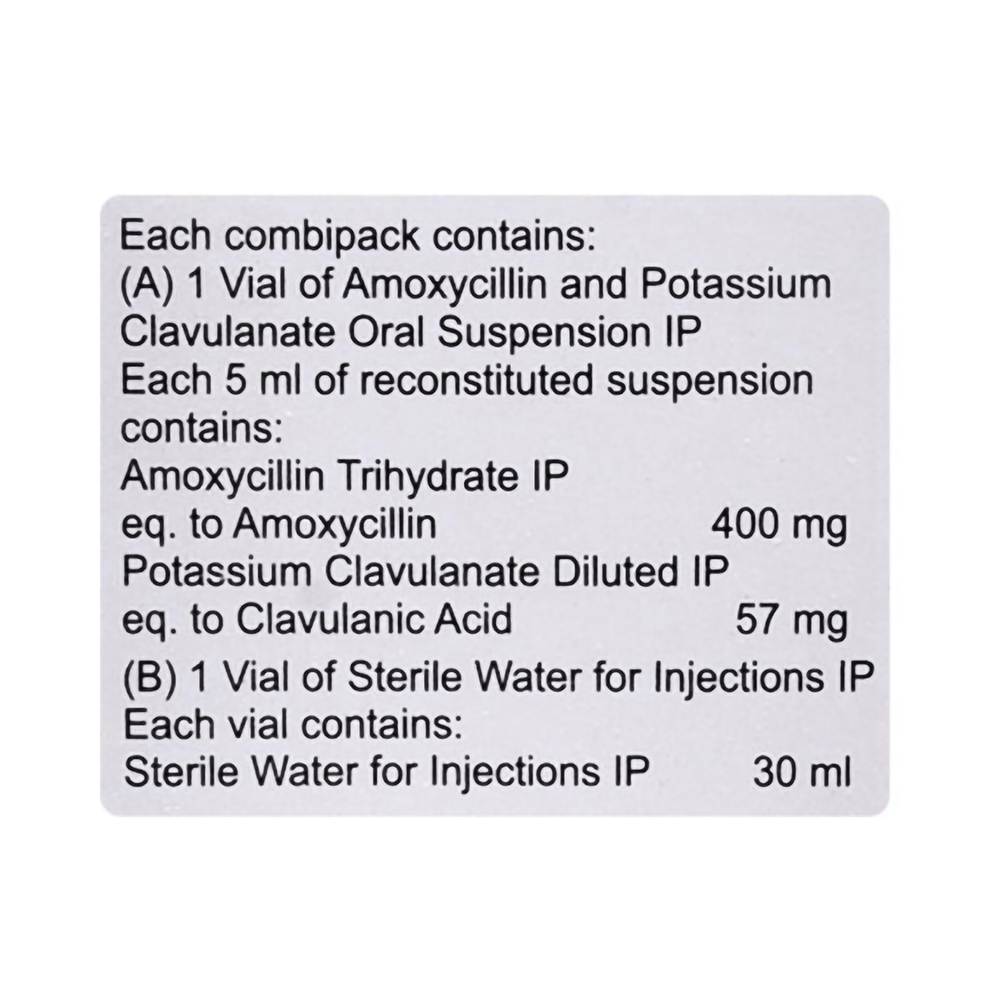 Salt Composition: Amoxycillin (400mg/5ml) + Clavulanic Acid (57mg/5ml)