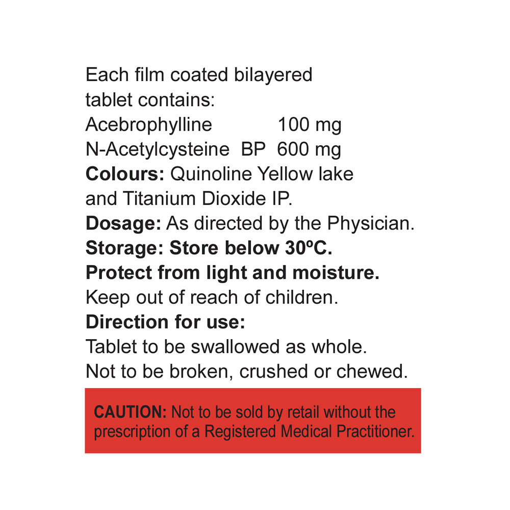 Salt Composition: Acebrophylline (100mg) + Acetylcysteine (600mg)