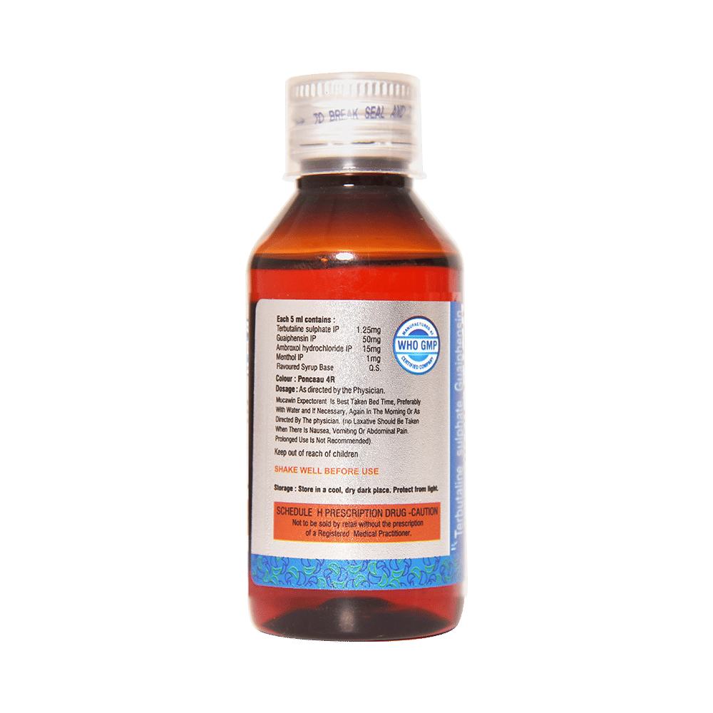 In CoughMucawin Expectorant Sugar Free gives relief from cough by loosening thick mucus and making it easier to cough it out. It also makes it easier for air to move in and out of your airways. This reduces the frequency of coughing and makes you feel better. Mucawin Expectorant Sugar Free also soothes your throat and gives relief from irritation. Along with medications, drink enough luke warm water and gargle with warm salt water to ease the symptoms.