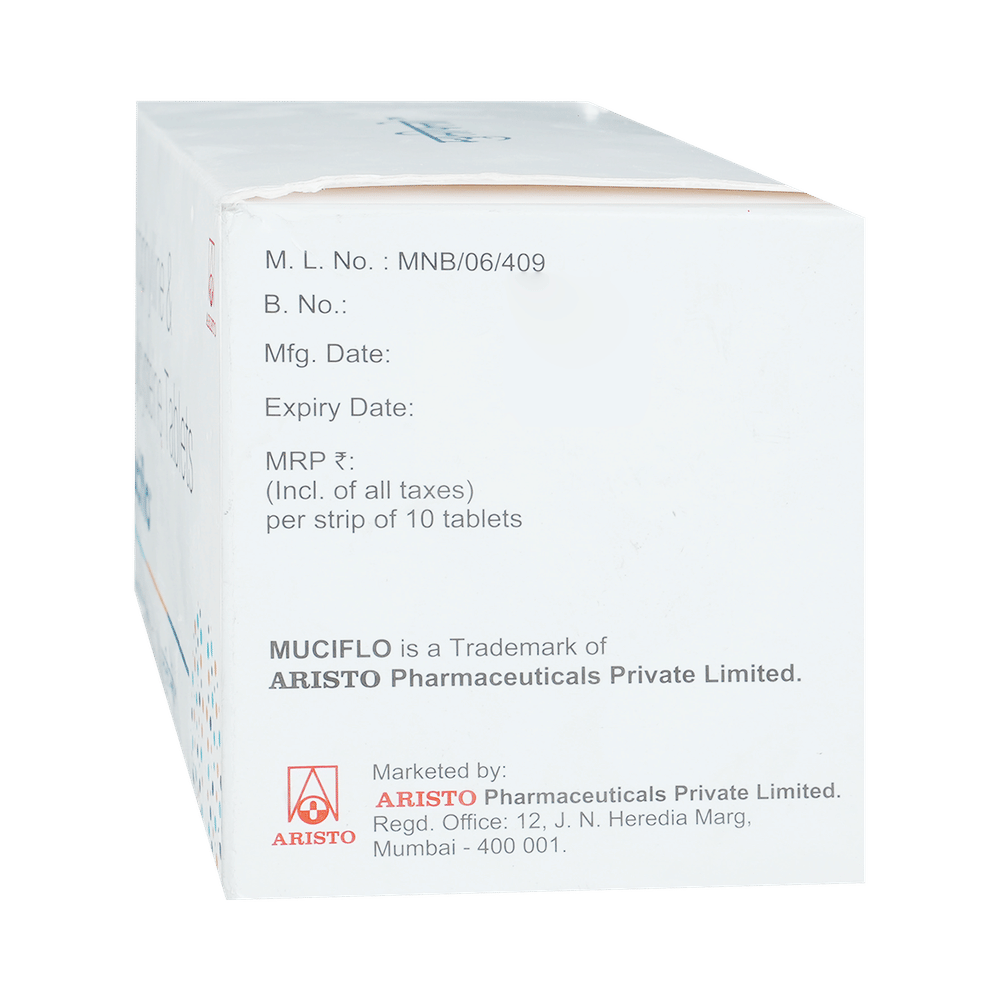 Take this medicine in the dose and duration as advised by your doctor. Swallow it as a whole. Do not chew, crush or break it. Muciflo Tablet may be taken with or without food, but it is better to take it at a fixed time.